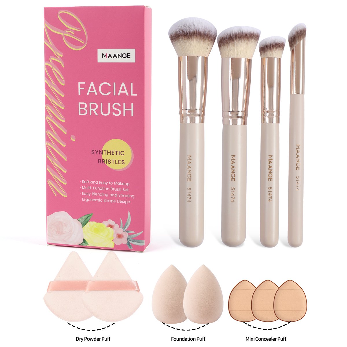 The set includes 4 premium-quality makeup brushes and 7 assorted powder puffs and sponges—perfect for both dry and wet applications. The ultra-soft synthetic bristles are gentle on the skin yet dense enough to provide even, streak-free coverage. Paired with the triangle-shaped puffs and cushion sponges, you’ll have complete control and precision, even in hard-to-reach areas like under the eyes and around the nose.