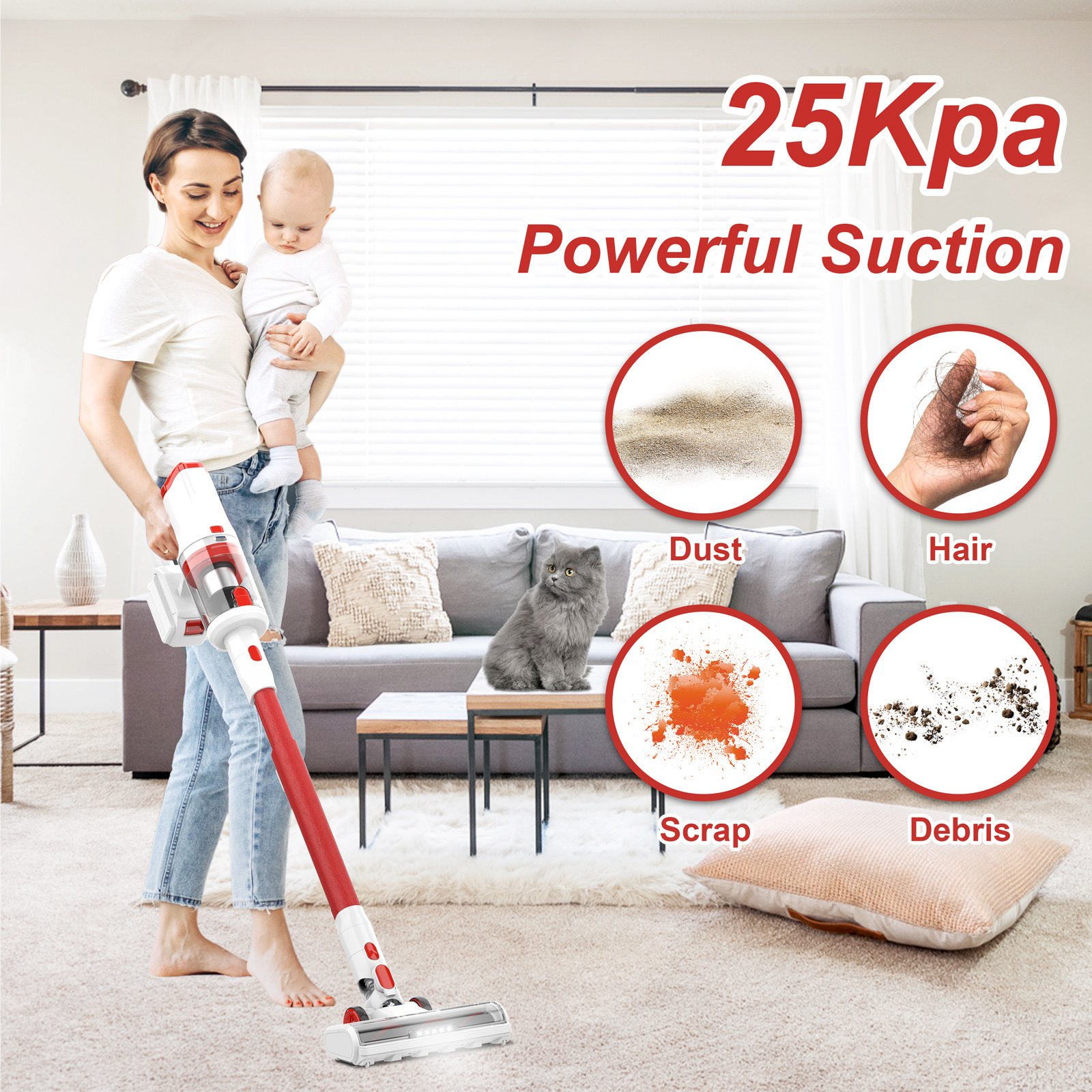 • High Suction Power: Enjoy deep cleaning with 28Kpa suction power that picks up dirt, dust, and debris effortlessly.