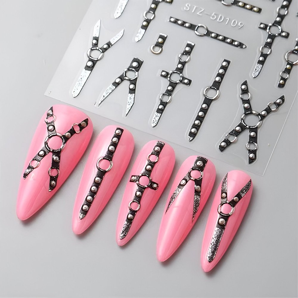 Each decal features a raised 5D texture with a detailed black belt design that pops against any base color. Measuring approximately 2.4 x 3.1 inches, this single sheet is packed with unique shapes and patterns that let you create a custom nail look in minutes—no salon visit required. Best of all, they’re free from high-concern chemicals, making them a safer, stylish choice for DIY nail lovers.