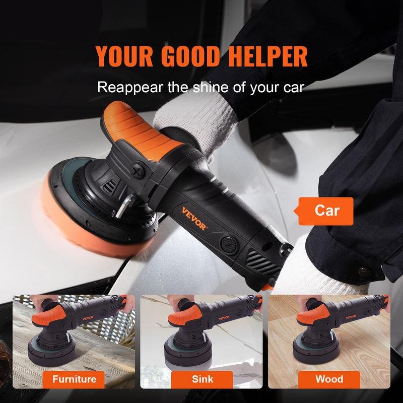 This polisher isn’t just for cars! Its flexible design makes it the perfect tool for polishing a variety of surfaces, including wood, metal, and ceramic. Restore clarity to your headlights, eliminate scuffs on your furniture, or polish your kitchen counters to a sparkling shine. No matter what you need to buff, the 6-Inch Electric Dual Action Polisher Kit has you covered, making it a must-have for anyone who loves DIY projects or wants to maintain their car’s showroom shine.