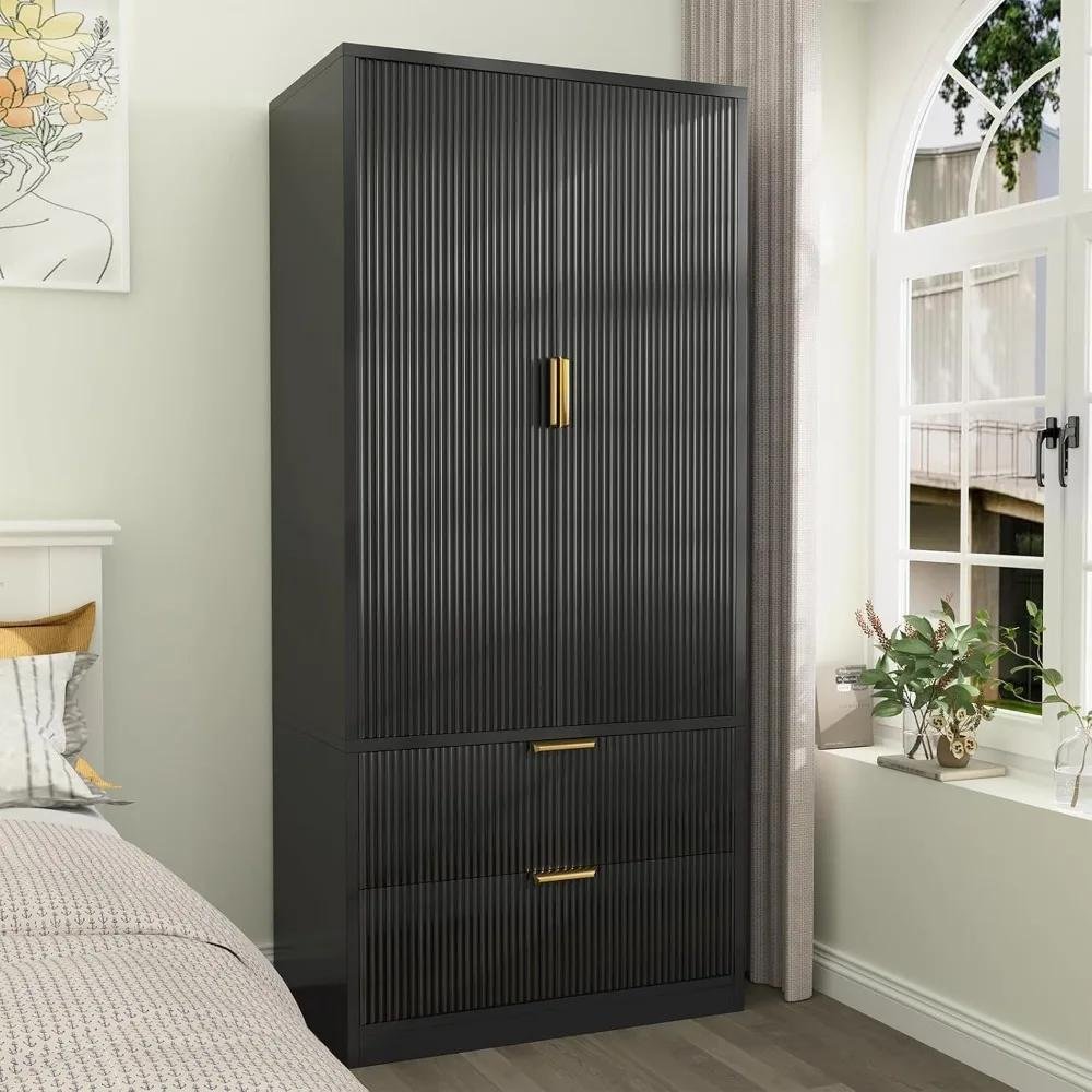 Upgrade your home organization with this stunning 70-inch modern wardrobe closet. Designed to blend elegance and practicality, this sleek storage solution is perfect for those who value both form and function. Featuring fluted double doors with smooth gold handles, this wardrobe instantly elevates any room with a refined touch. Its minimalist design makes it an ideal fit for bedrooms, guest rooms, offices, and even utility areas like laundry rooms or basements.