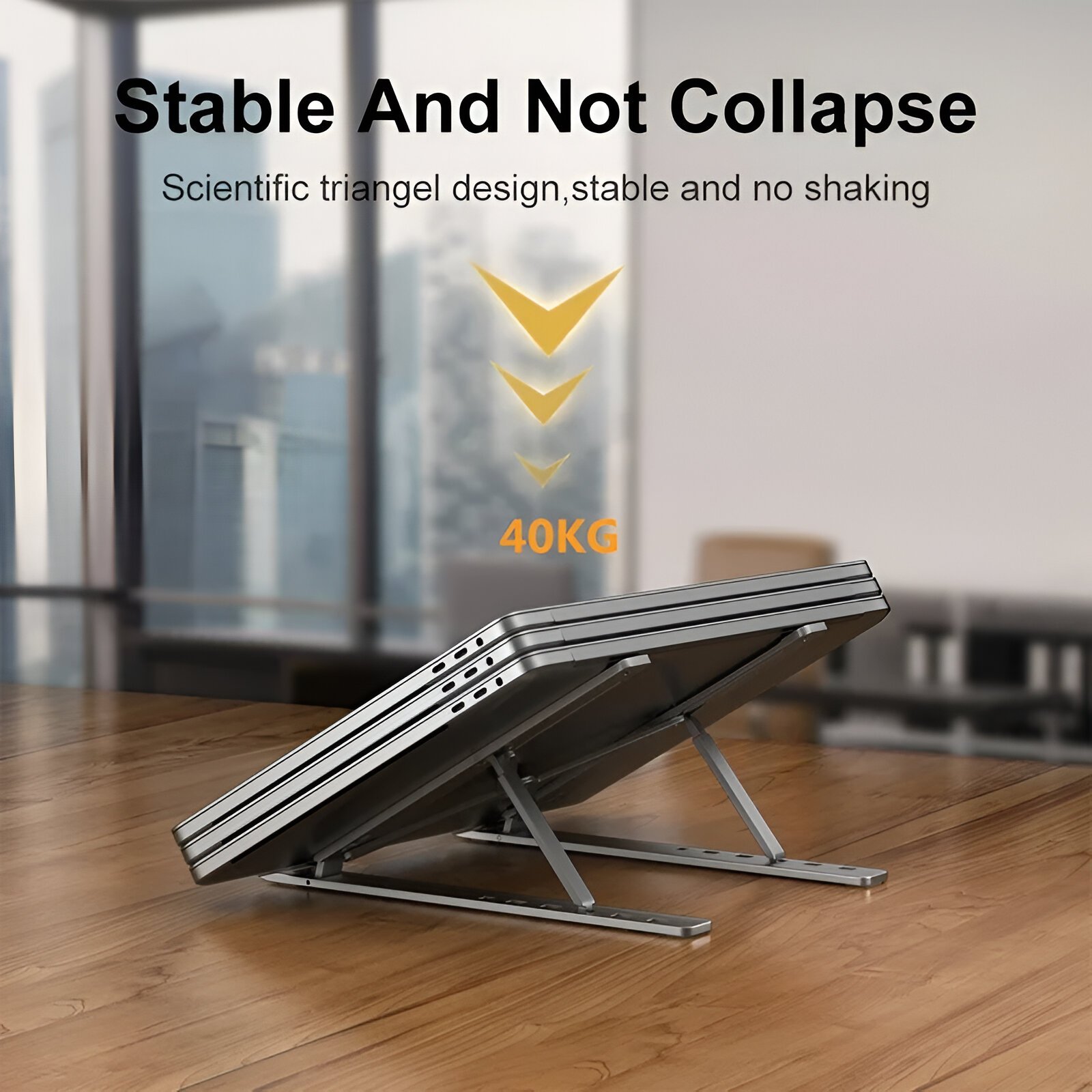 This laptop holder stands out due to its combination of style, durability, and practicality. Its ergonomic design promotes better posture, making it ideal for long hours of work or study. The aluminum construction not only adds elegance but also ensures long-lasting performance. Its foldable design means you can take it wherever you go, making it the perfect companion for busy professionals, students, and travelers.