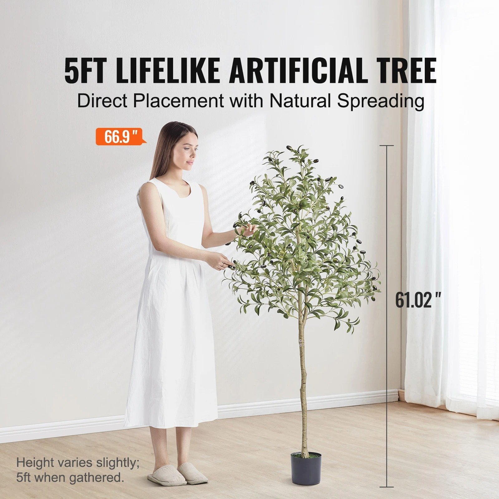 Elevate your space with the timeless charm of an olive tree—minus the maintenance. This 5-foot artificial olive tree delivers the serene beauty of nature in a realistic, mess-free form. Whether you’re looking to brighten up a living room corner, enhance a low-light office space, or add warmth to a hallway or patio, this faux potted plant brings effortless greenery to any setting.