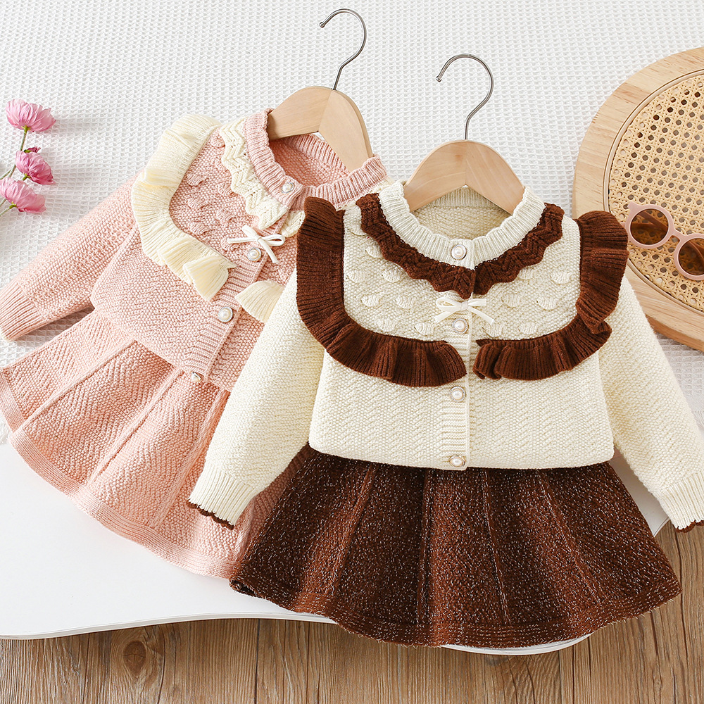 • Complete Set: Includes knit cardigan and skirt for effortless styling.