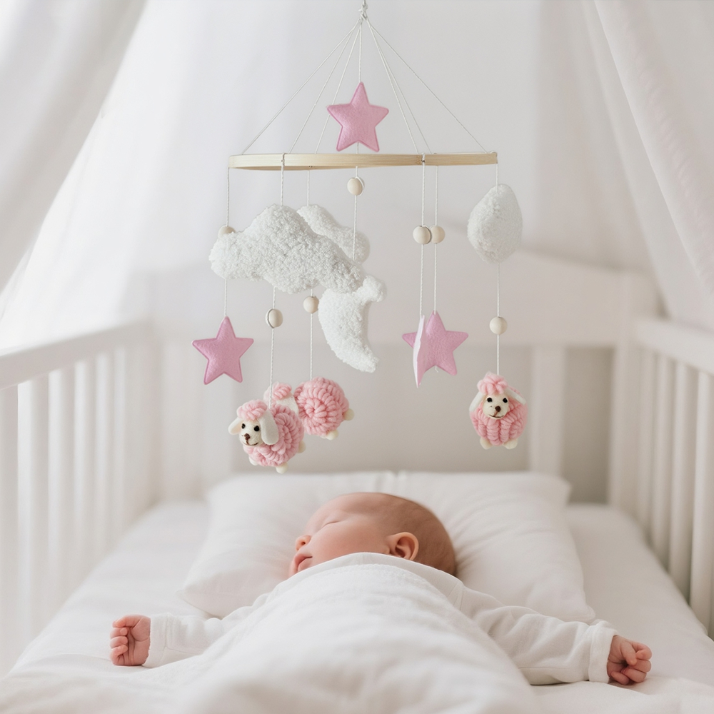 This bedbell is more than just a decoration – it’s a multi-sensory experience for your baby that can aid their development in several key areas. From fine motor skills to auditory stimulation, this simple yet effective design encourages your baby’s growth in fun and engaging ways. The soothing sounds and colorful crochet toys offer the perfect balance of entertainment and relaxation, making it ideal for naps or playtime.