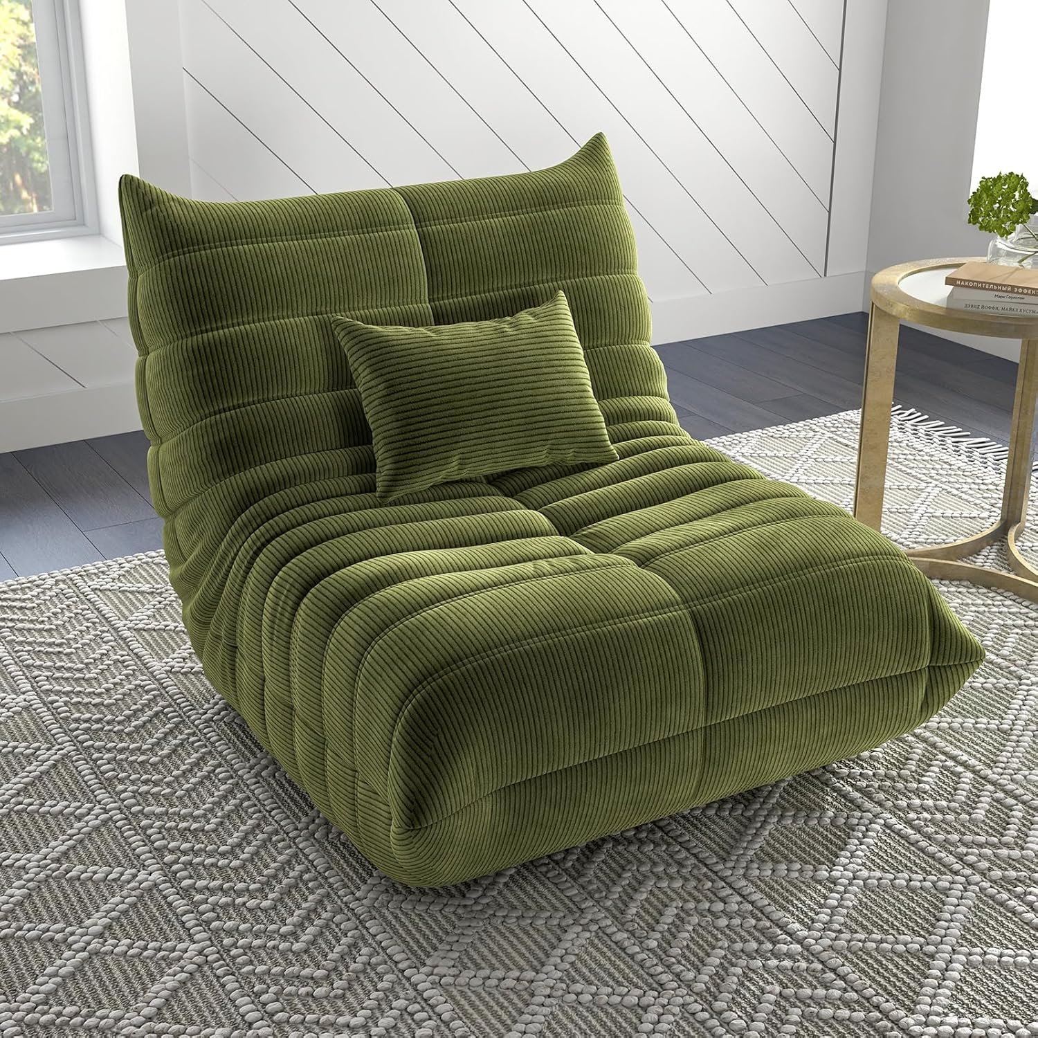 Comfy Corduroy Bean Bag Chair with Pillow – Memory Foam Seating for Adults