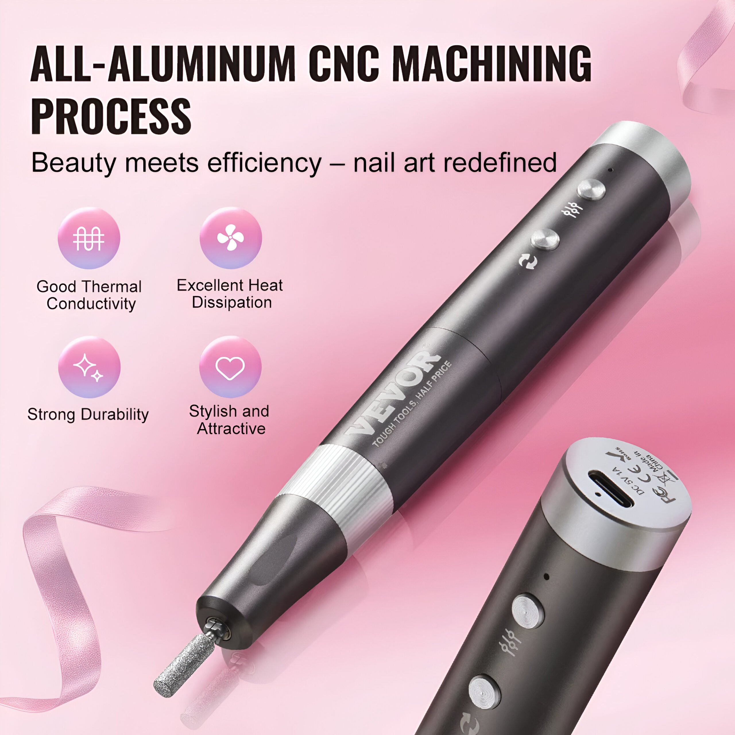 Crafted from CNC aluminum, this nail drill offers exceptional durability and heat dissipation, preventing overheating and ensuring a long lifespan. The sturdy construction provides stability for prolonged use, making it an ideal tool for both beginners and professionals. It’s the perfect blend of beauty and durability, designed to meet all your nail care needs.