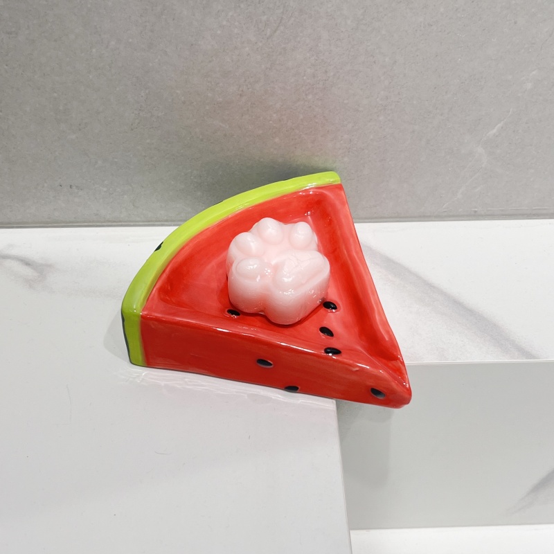 Creative Ceramic Watermelon Soap Dish – Cute No-Drain Bathroom Sink Holder