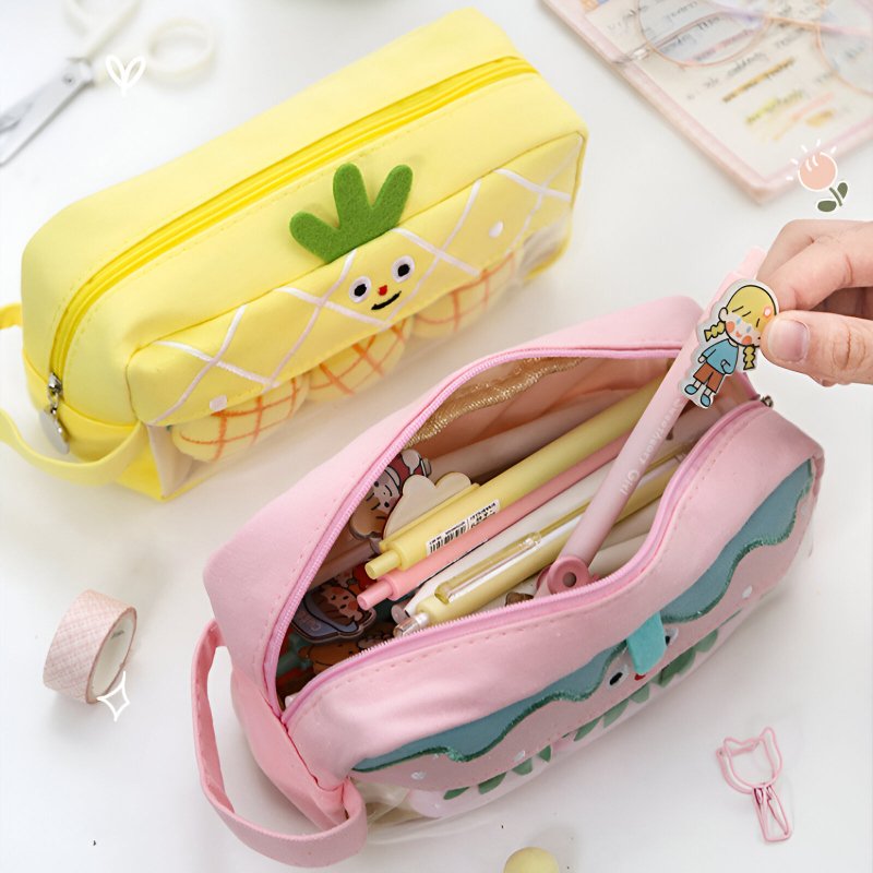 Organize your stationery in the cutest way possible with this adorable Fruit Pencil Case. Featuring charming fruit-inspired designs, this large-capacity pouch is perfect for students and stationery enthusiasts alike. Made from durable canvas material, it combines functionality with a fun, kawaii aesthetic that will make it the highlight of your school or office supplies.