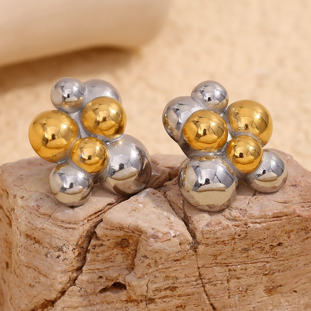 Double Color Irregular Round Bead Stud Earrings – Gold Plated Stainless Steel