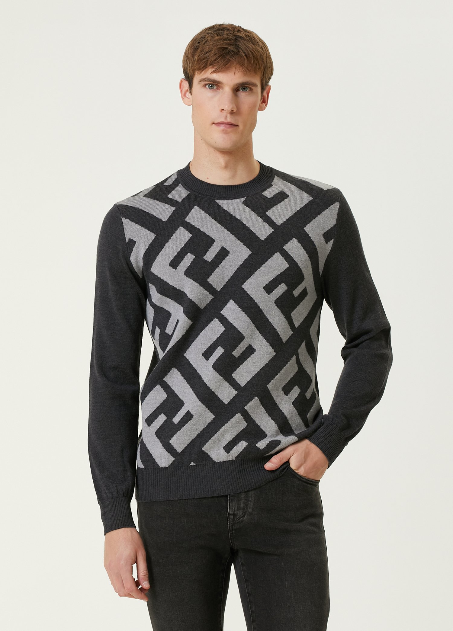 Fendi FF Logo Grey Wool Sweater – 100% Wool Luxury