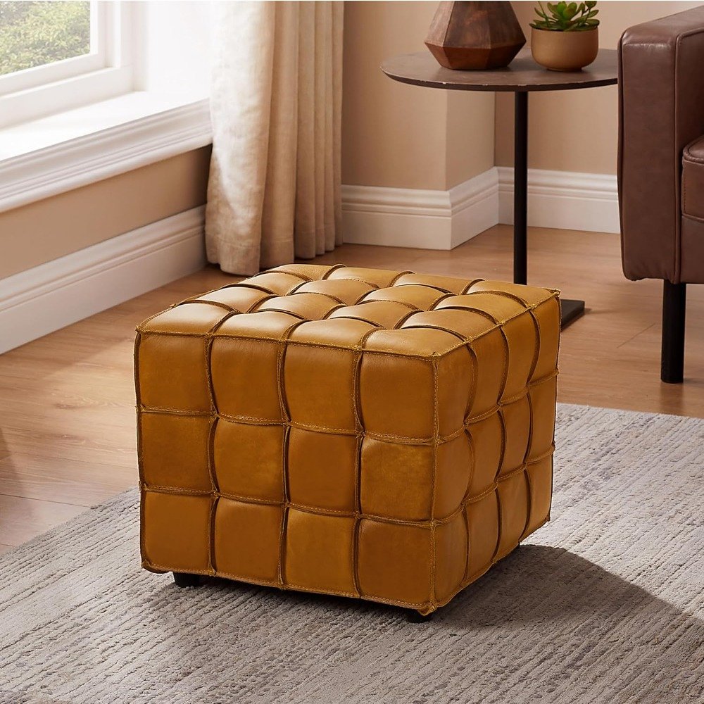 Bring warmth, elegance, and versatility into your home with this beautifully crafted Genuine Leather Square Ottoman Footstool. Designed to seamlessly blend into both modern and classic interiors, this square ottoman in a rich yellow-brown hue is more than just a footrest—it’s a stylish, functional accent piece that enhances any room it graces. Whether placed in your living room, bedroom, or reading nook, it offers the perfect blend of comfort and sophistication.