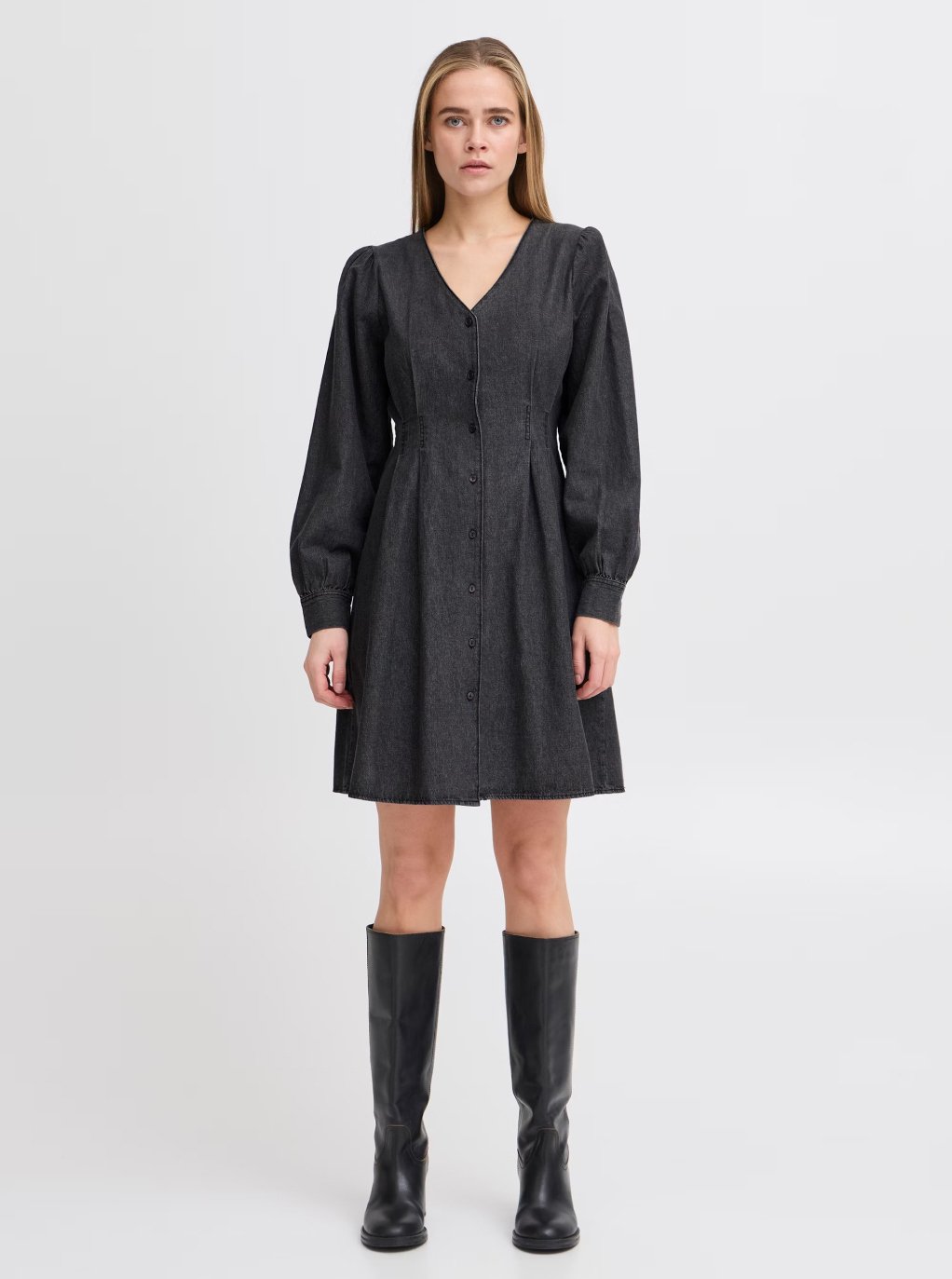Effortless Elegance with Ichi Women’s Black Marl V-Neck Dress