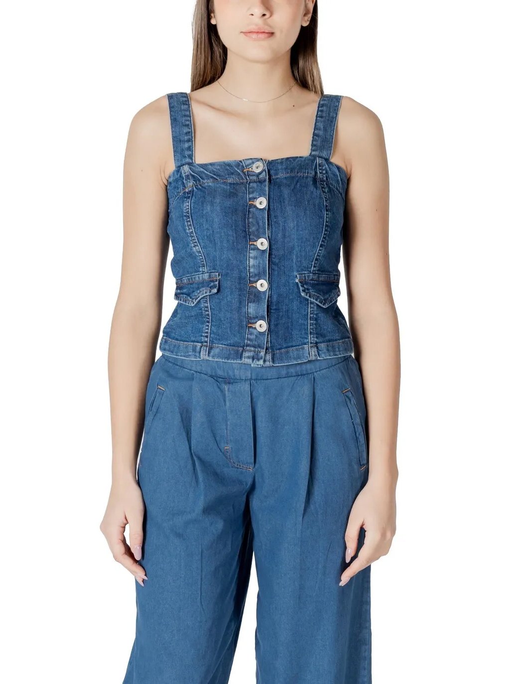 Ichi Women’s Blue Square Neck Top with Straps