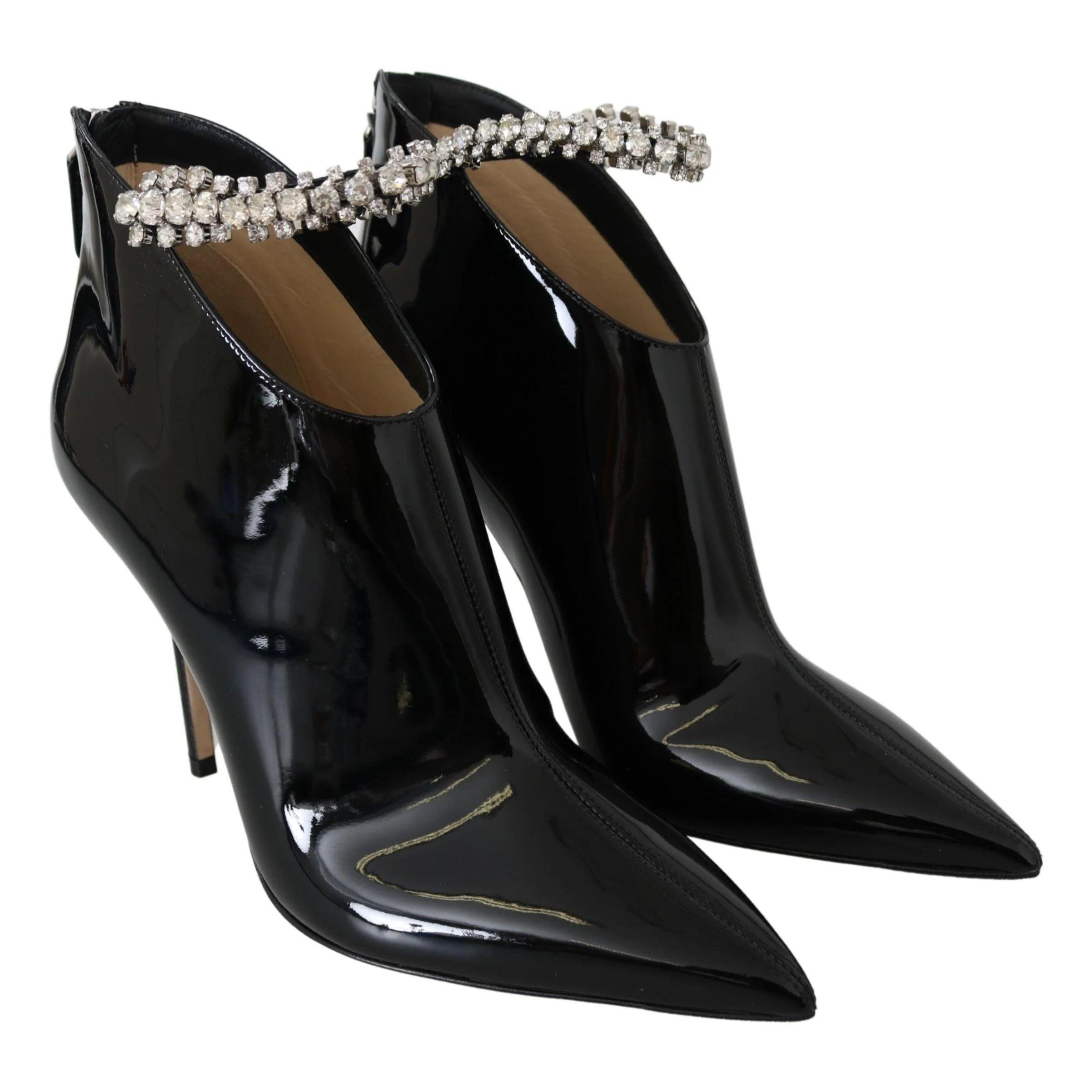 Jimmy Choo Blaize 100 Black Patent Leather Crystal Strap Boots