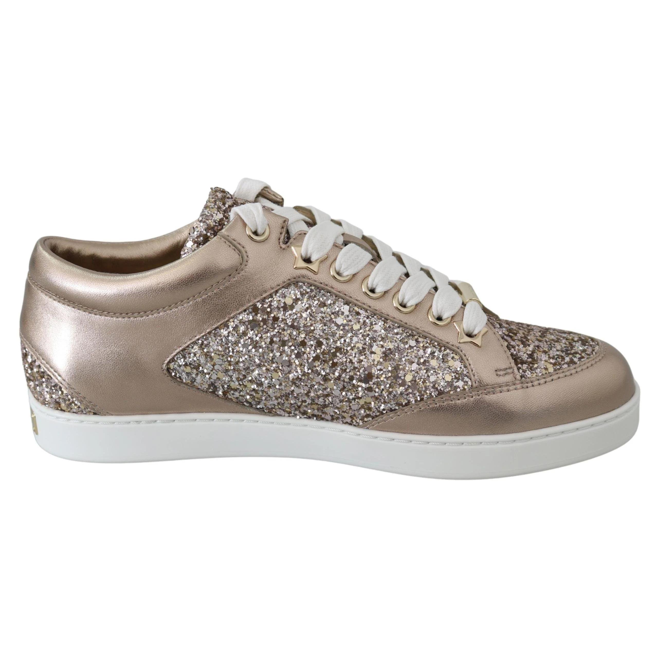 The Jimmy Choo Miami Sneakers are versatile enough for any casual or semi-casual occasion. Pair them with denim jeans and a cozy sweater for a relaxed look, or dress them up with a flowy skirt and blouse for a touch of casual elegance. Their glitter finish makes them ideal for adding sparkle to daytime or evening ensembles.