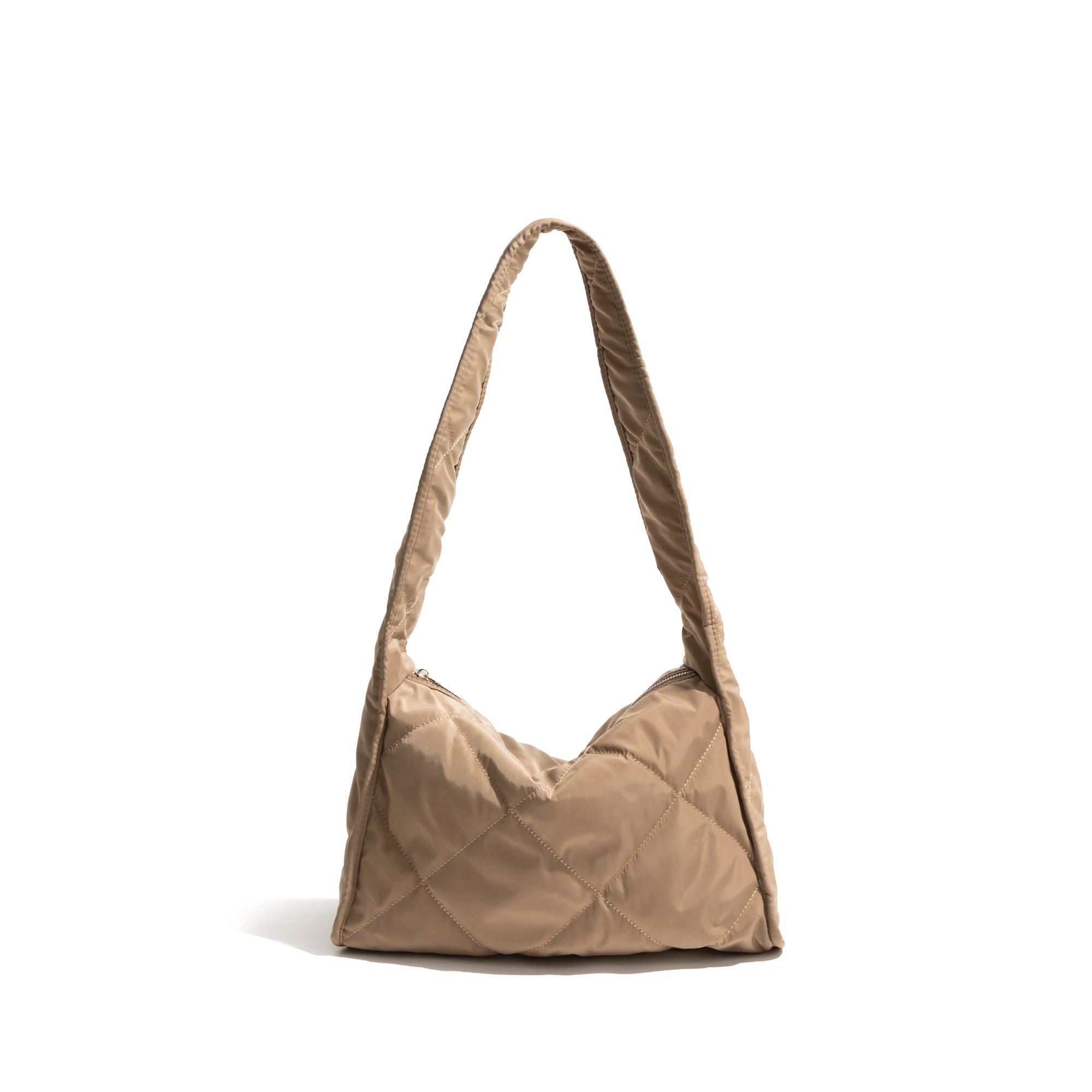 What truly sets the Diamond Lattice Quilted Shoulder Bag apart is its unique combination of elegance, functionality, and comfort. The quilted nylon exterior gives it a luxurious feel, while the large interior provides ample space for your essentials. The padded texture makes it perfect for colder months, adding a cozy touch to your winter wardrobe. Plus, the interior zipper pocket ensures you can keep your small items secure and easy to access.
