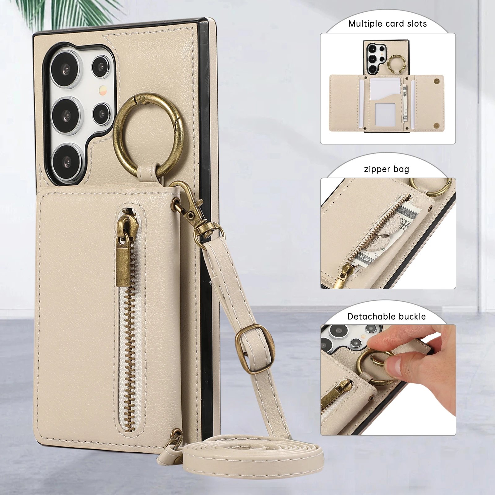 Leather Crossbody Wallet Case with Card Holder & Ring for Samsung Galaxy