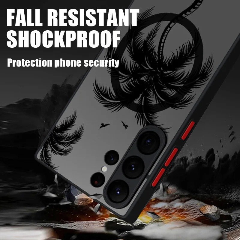This case stands out with its unique coconut palm design, combining aesthetics with practical functionality. The MagSafe compatibility and durable construction make it a versatile accessory for Samsung users who want to protect their devices in style. The anti-fingerprint matte finish ensures it stays clean and sleek all day long.