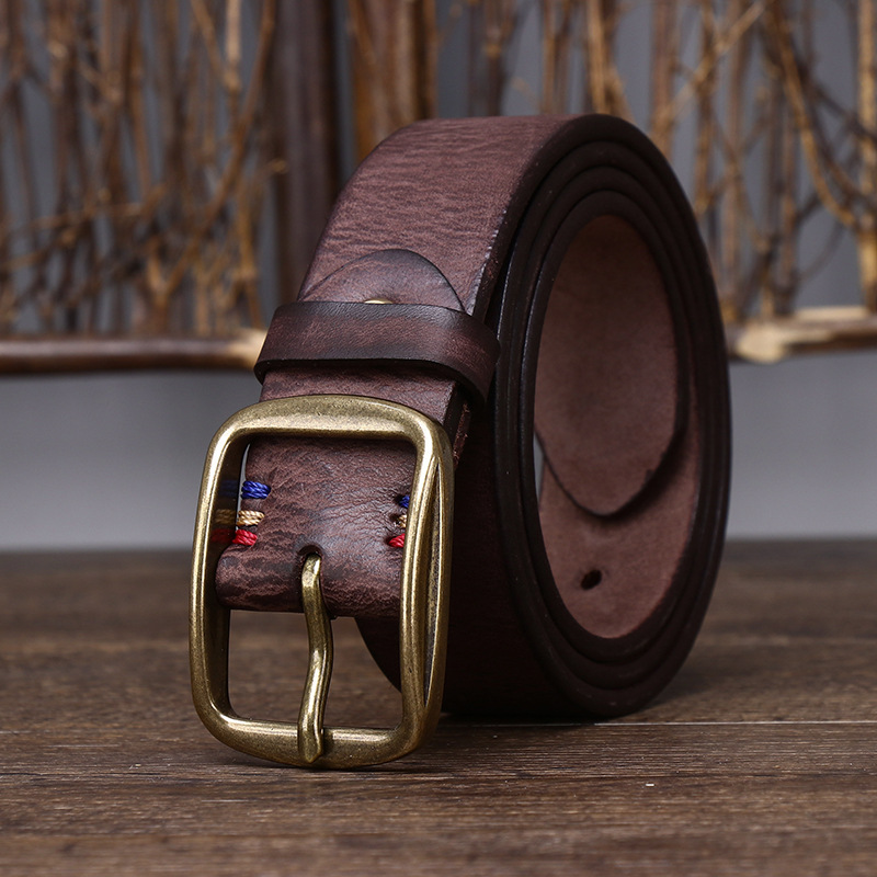 Men’s 1.5″ Wide Genuine Leather Belt with Solid Brass Buckle