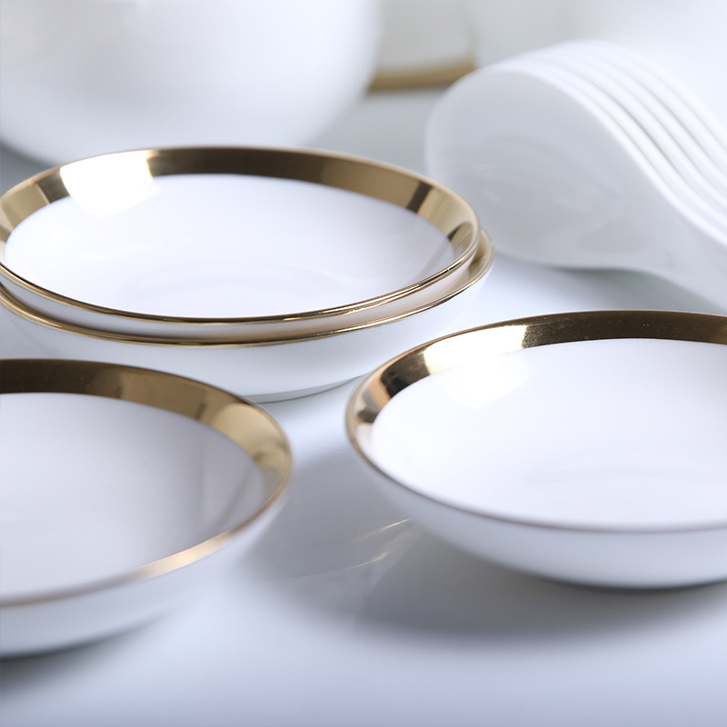 Crafted using high-temperature firing techniques, this handmade ceramic dish combines beauty with durability. The smooth, white porcelain surface is finished with a clear, lead-free, cadmium-free glaze that’s not only safe and eco-friendly, but also easy to clean. The delicate gold rim — hand-painted with care — adds a luxurious accent that feels right at home in both casual and formal settings.