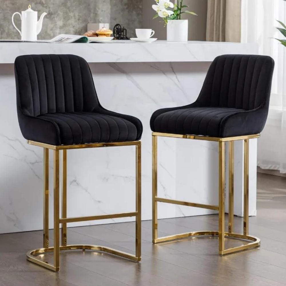 Whether you’re enjoying breakfast at your kitchen counter or entertaining guests at your home bar, these velvet bar stools are a standout addition. Their unique line design on the seats and backrest creates an elegant visual appeal that will elevate the aesthetic of any room. The gold frame adds a modern, glamorous touch that seamlessly blends with a variety of decor styles, from contemporary to classic.
