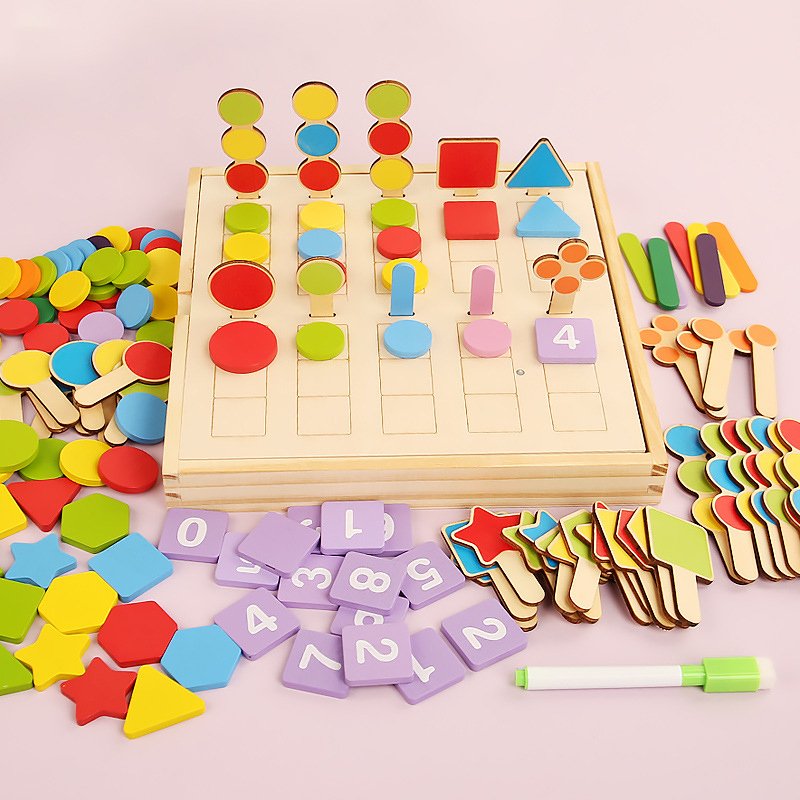 • Number Recognition: Helps kids learn numbers from 1 to 10 using colorful wooden chips.