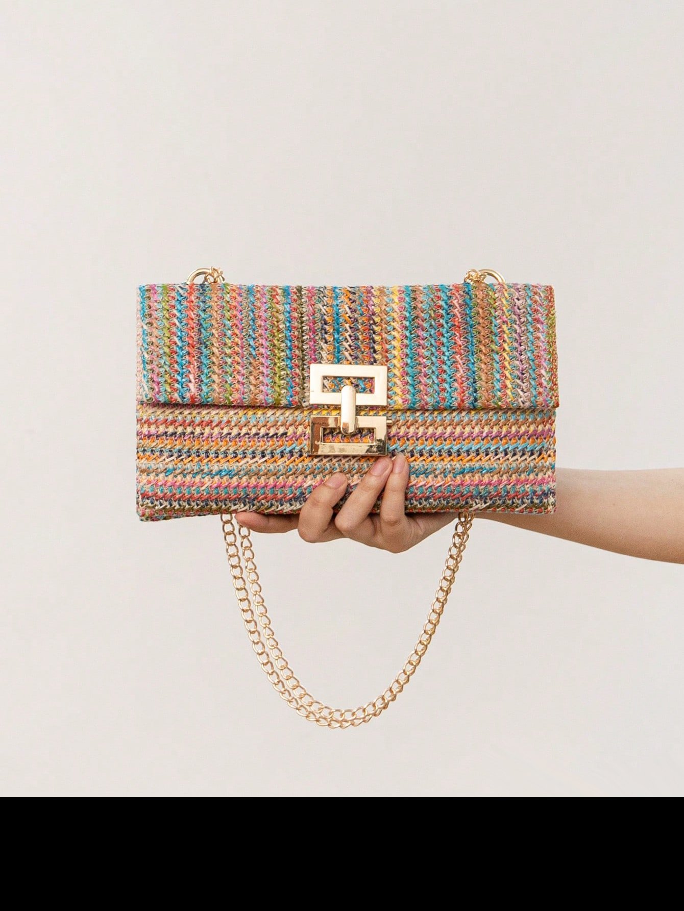 Designed with versatility in mind, this bag transitions effortlessly from shoulder to crossbody wear with its stylish chain strap. Its roomy interior offers enough space for your phone, wallet, sunglasses, and other must-haves, making it ideal for everything from quick errands to spontaneous beach getaways.