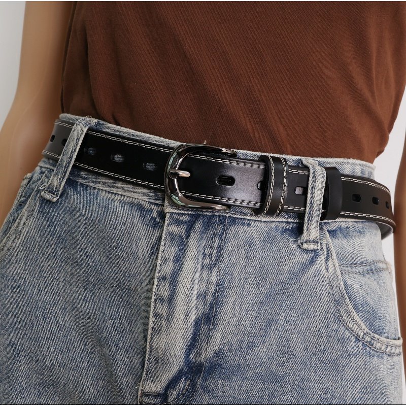 Pin Buckle Western Cowgirl Skinny Belt for Women – Genuine Leather Waist Strap