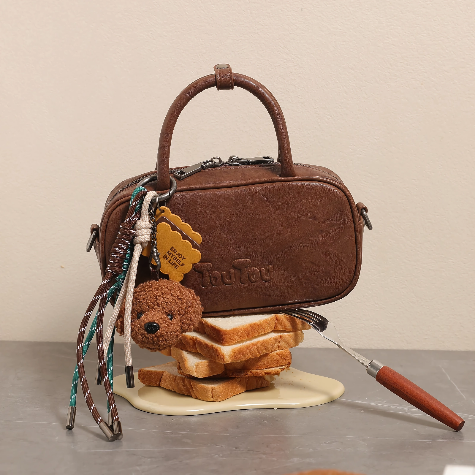 The TOUTOU Autumn Bowling Bag features a carefully designed structure with ample storage space, a secure zipper closure, and a stylish solid exterior that exudes sophistication. The single shoulder strap and handheld design offer convenience, while the polyester-lined interior ensures that all your essentials stay organized and protected.
