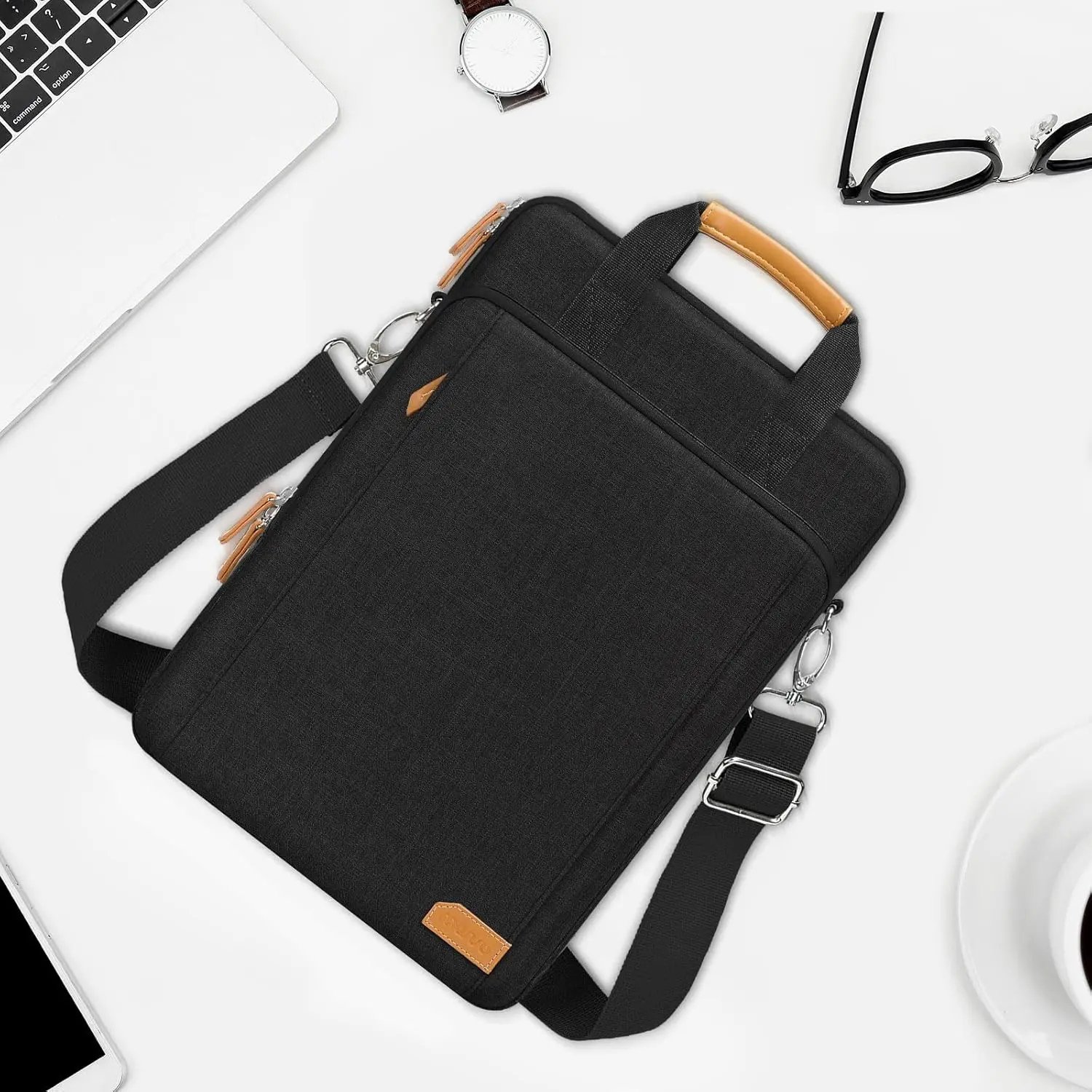 This laptop bag isn’t just protective; it’s thoughtfully designed for busy professionals and students who value style and functionality. Its slim profile ensures it fits easily into a larger backpack or can be carried on its own for a polished look. Whether you’re headed to the office, a coffee shop, or on a flight, this bag ensures your device stays safe and accessible.
