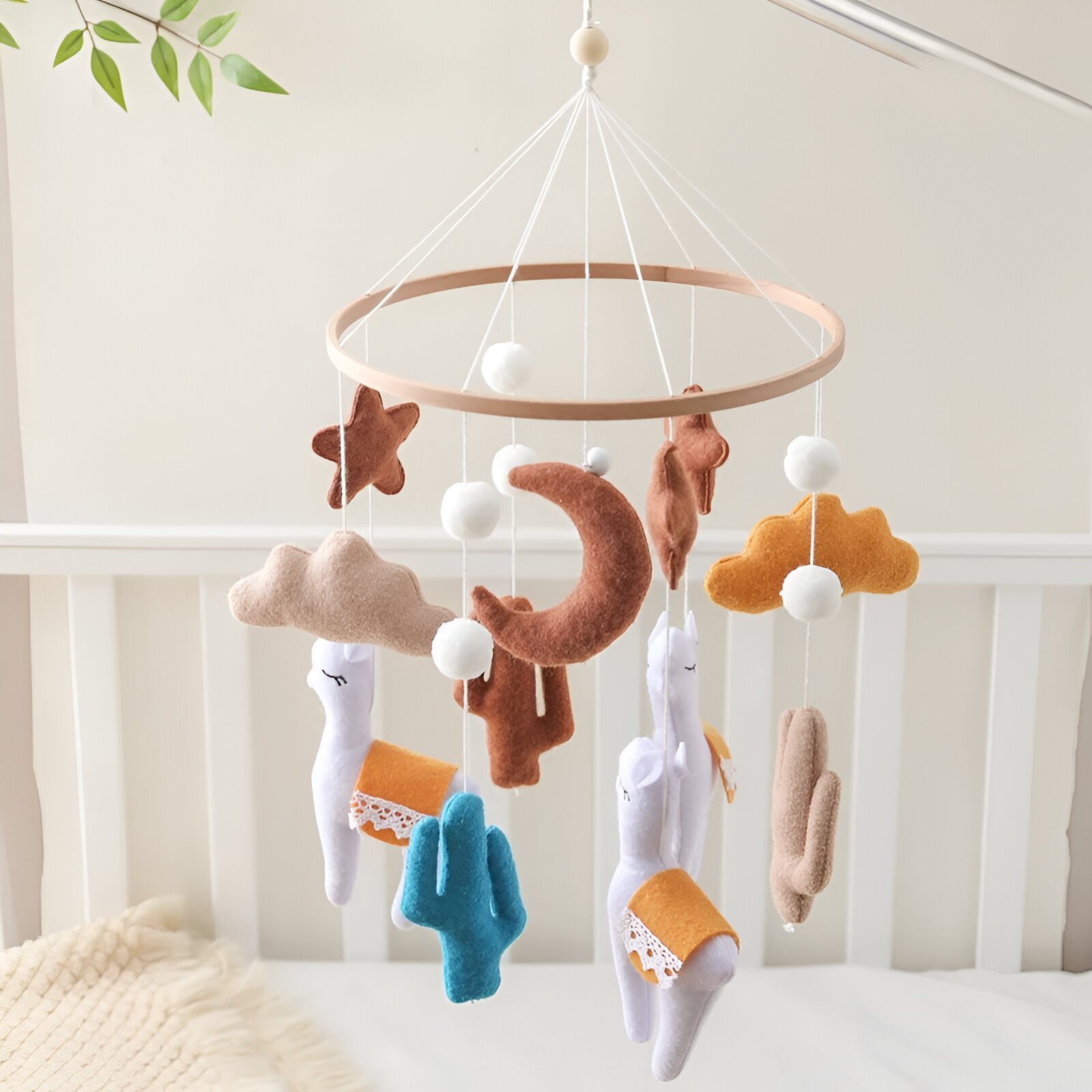 Transform your baby’s crib into a calming retreat with this Soft Felt Crib Mobile featuring adorable alpaca-shaped pendants and a wooden bracket. Designed to entertain and comfort your little one, this musical crib mobile is perfect for creating a serene environment. With gentle melodies and charming cartoon characters, it’s an ideal accessory for newborns and toddlers alike.
