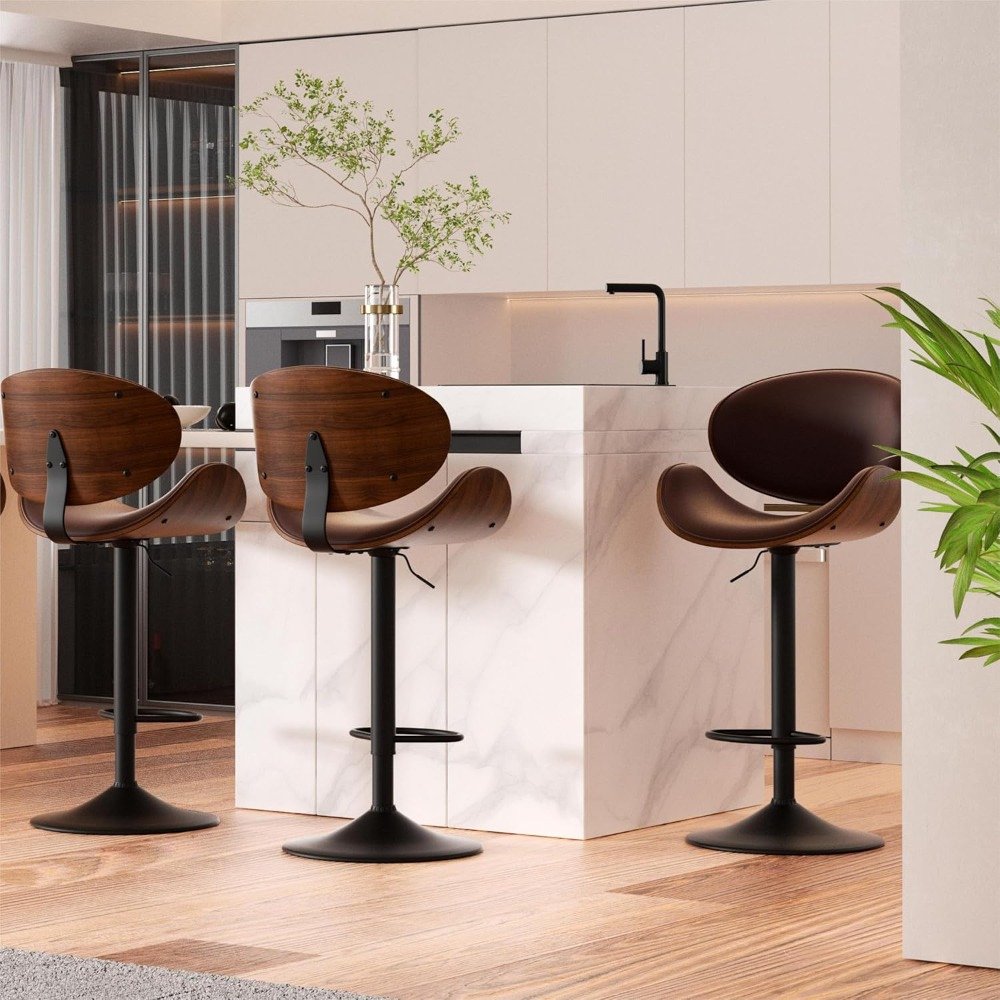 Crafted from high-quality PU leather, these stools are easy to clean and maintain, ensuring long-lasting comfort and durability. With a smooth 360° swivel and an adjustable seat height ranging from 23.5 inches to 32.5 inches, you can easily customize your seating experience to suit any table or countertop. Whether you’re hosting guests or enjoying a quiet meal, these stools provide the perfect perch for any occasion.