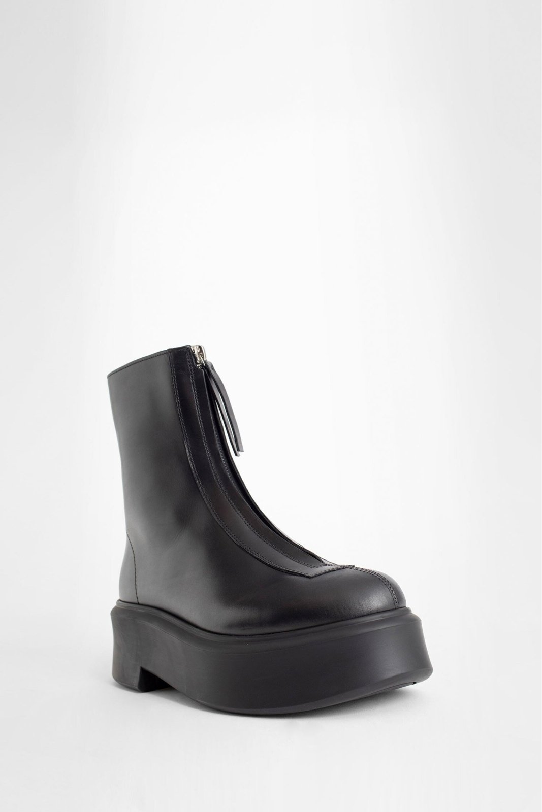 The Row Calfskin Ankle Boots with Platform Sole and Block Heel