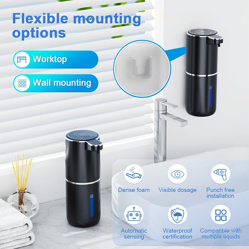 This automatic foam soap dispenser is perfect for a wide range of environments. Use it in your kitchen to simplify dishwashing, in the bathroom to encourage handwashing, or in public spaces like schools, hospitals, or hotels to promote better hygiene. It’s suitable for children and adults alike, making it a great addition to family and communal spaces.