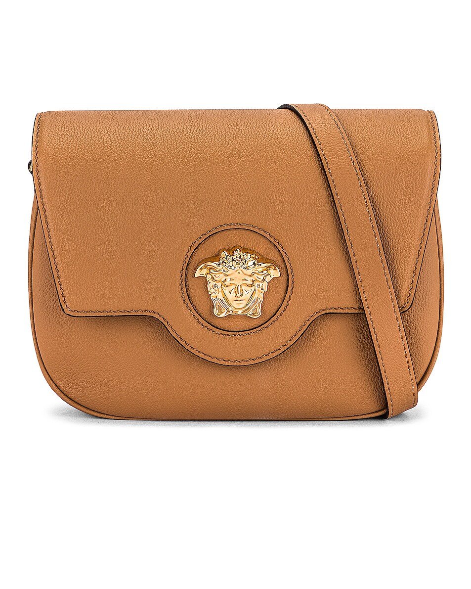 Versace Brown Calf Leather Shoulder Bag with Adjustable Strap