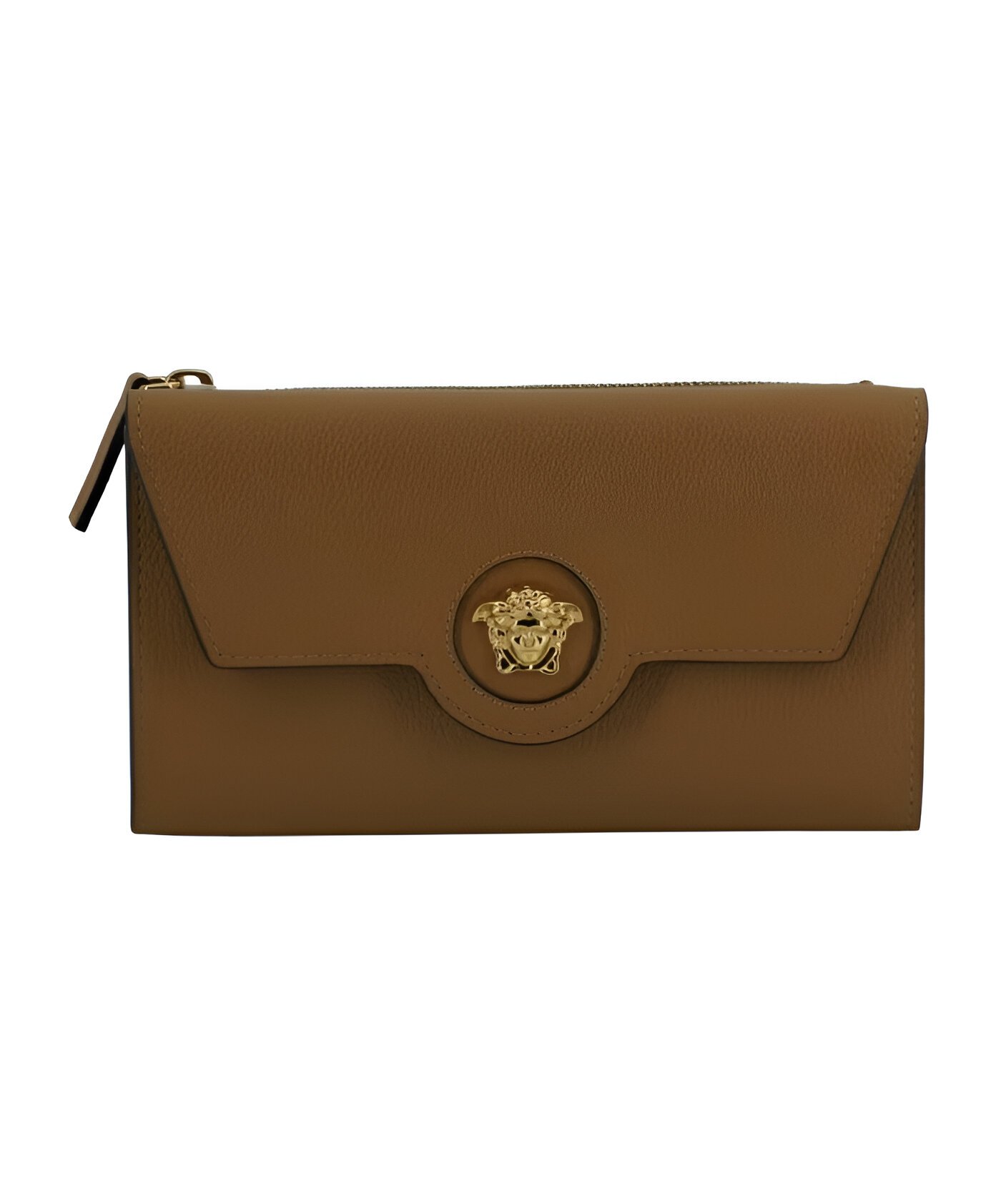 Versace Brown Calf Leather Wallet with Medusa Logo and 12 Card Slots