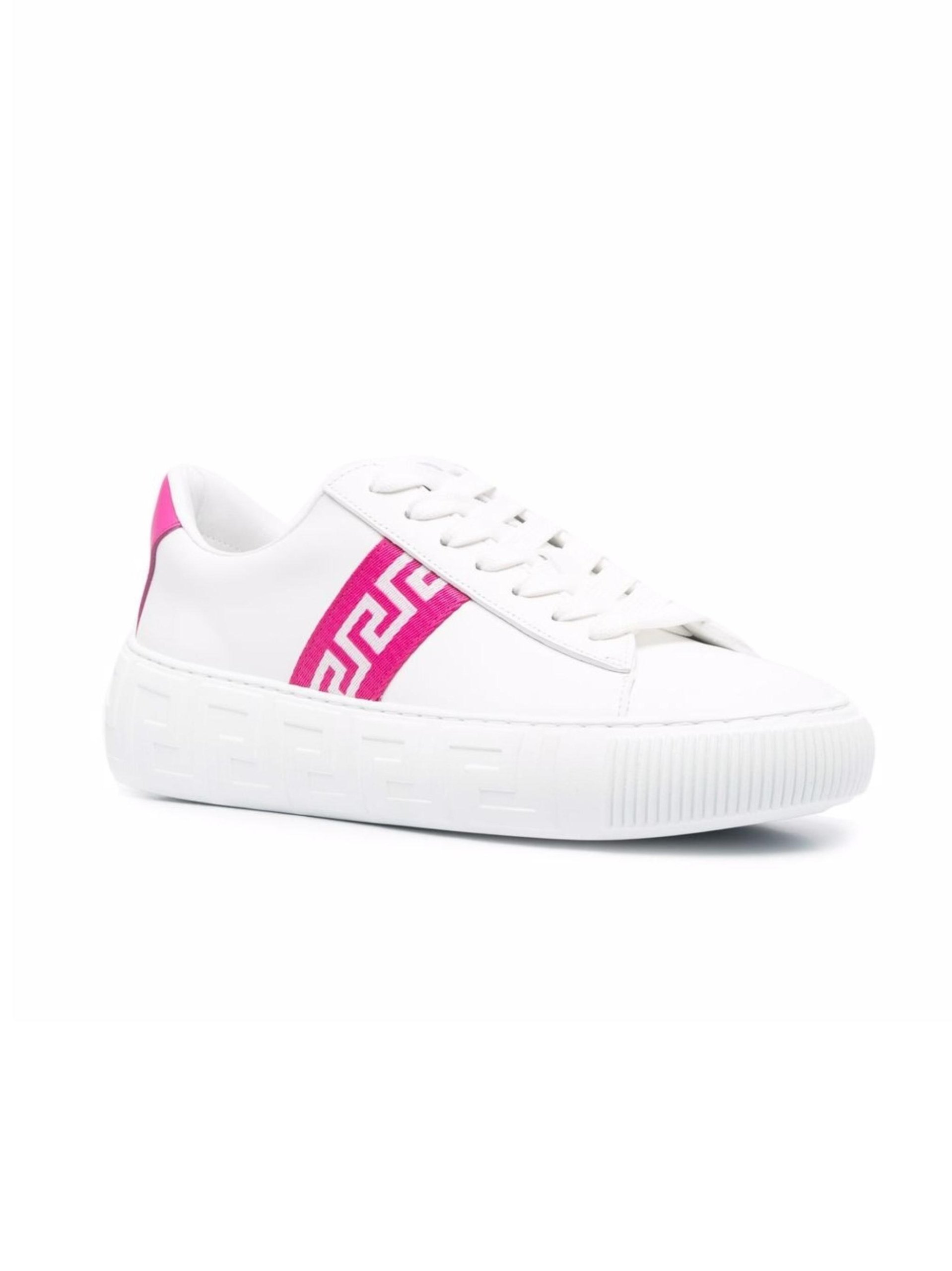 Versace Low-Top Sneakers – White/Pink Leather with Greca Detailing