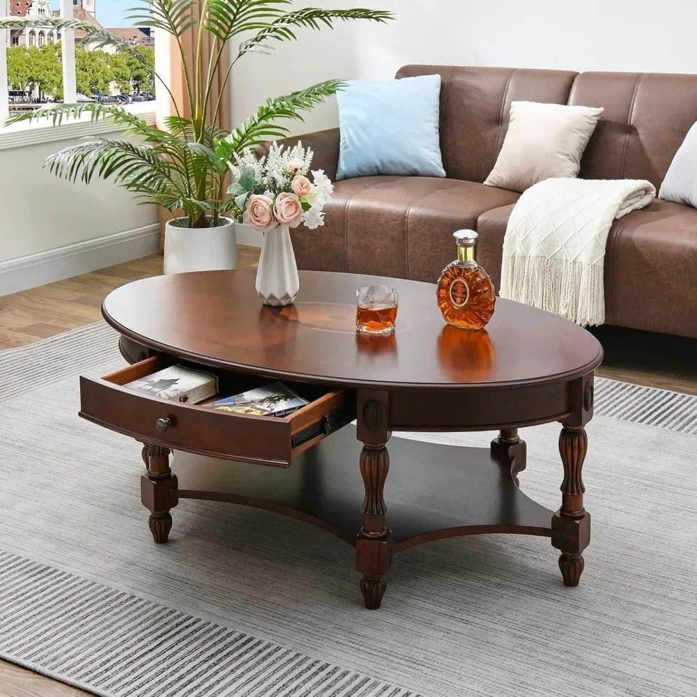 If you’re looking for a functional yet stylish piece of furniture that brings both beauty and practicality into your home, this Victorian oval coffee table is the ideal choice. It’s not just a place to rest your coffee cup – it’s a piece of art that tells a story. The timeless charm of its design, paired with sturdy solid wood construction, guarantees that this coffee table will serve as a centerpiece for years to come. Plus, with its ample storage options, you can keep your living space neat and organized without compromising on style.