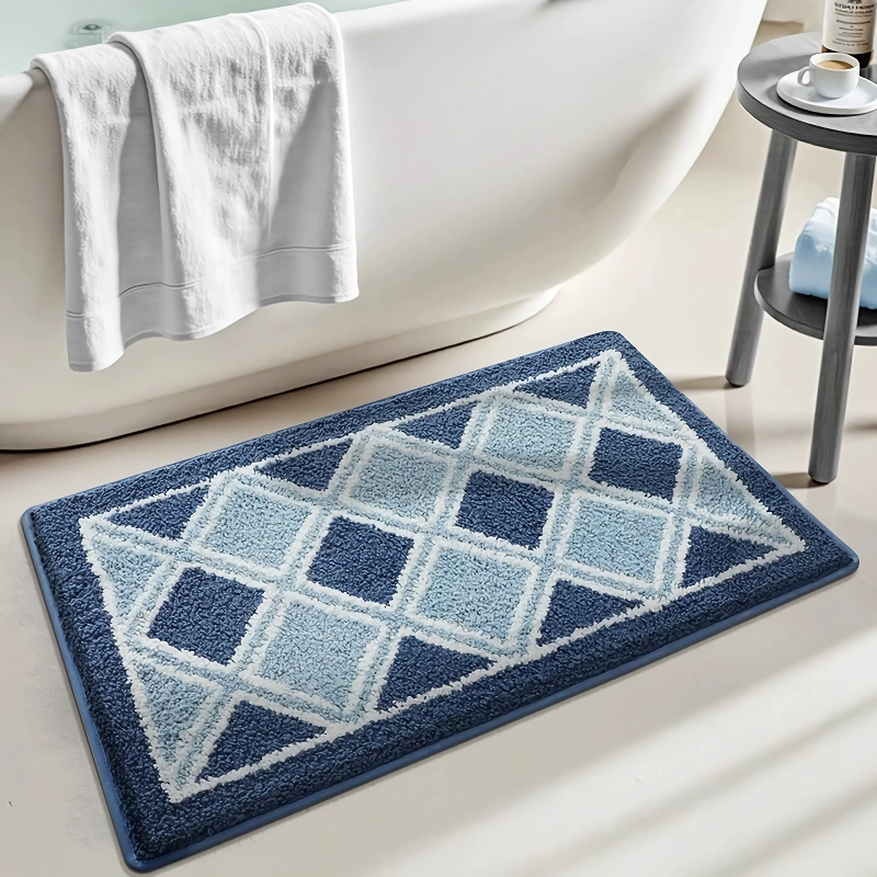 Vintage Tufted Diamond Bathroom Mat – Soft Non-Slip Rug for Home Decor