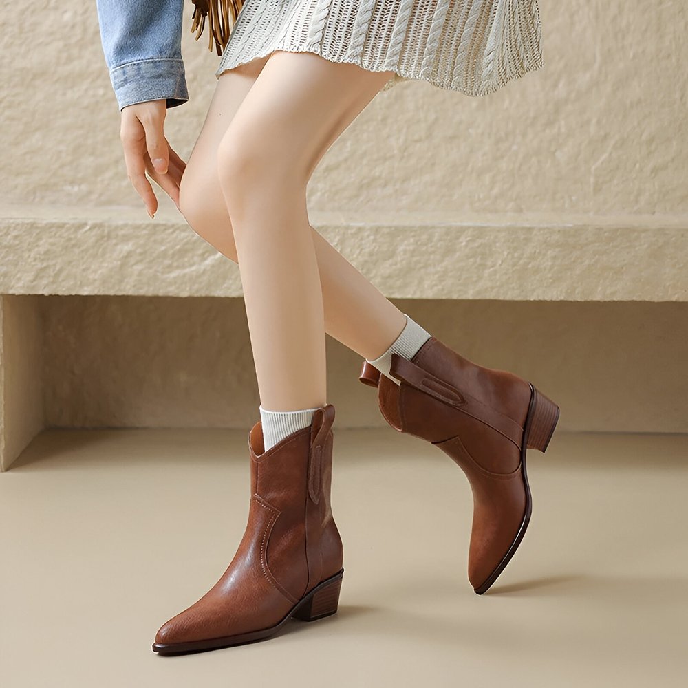 The vintage leather ankle boots are more than just a pair of shoes—they’re a statement. The combination of sleek, pointed toes and a sturdy square heel offers a perfect balance of fashion and functionality. Whether you’re pairing them with skirts, dresses, or trousers, these boots will effortlessly elevate your look, adding a touch of retro glam to your wardrobe. Their slip-on design makes them perfect for busy mornings when you need to get out the door fast without sacrificing style.