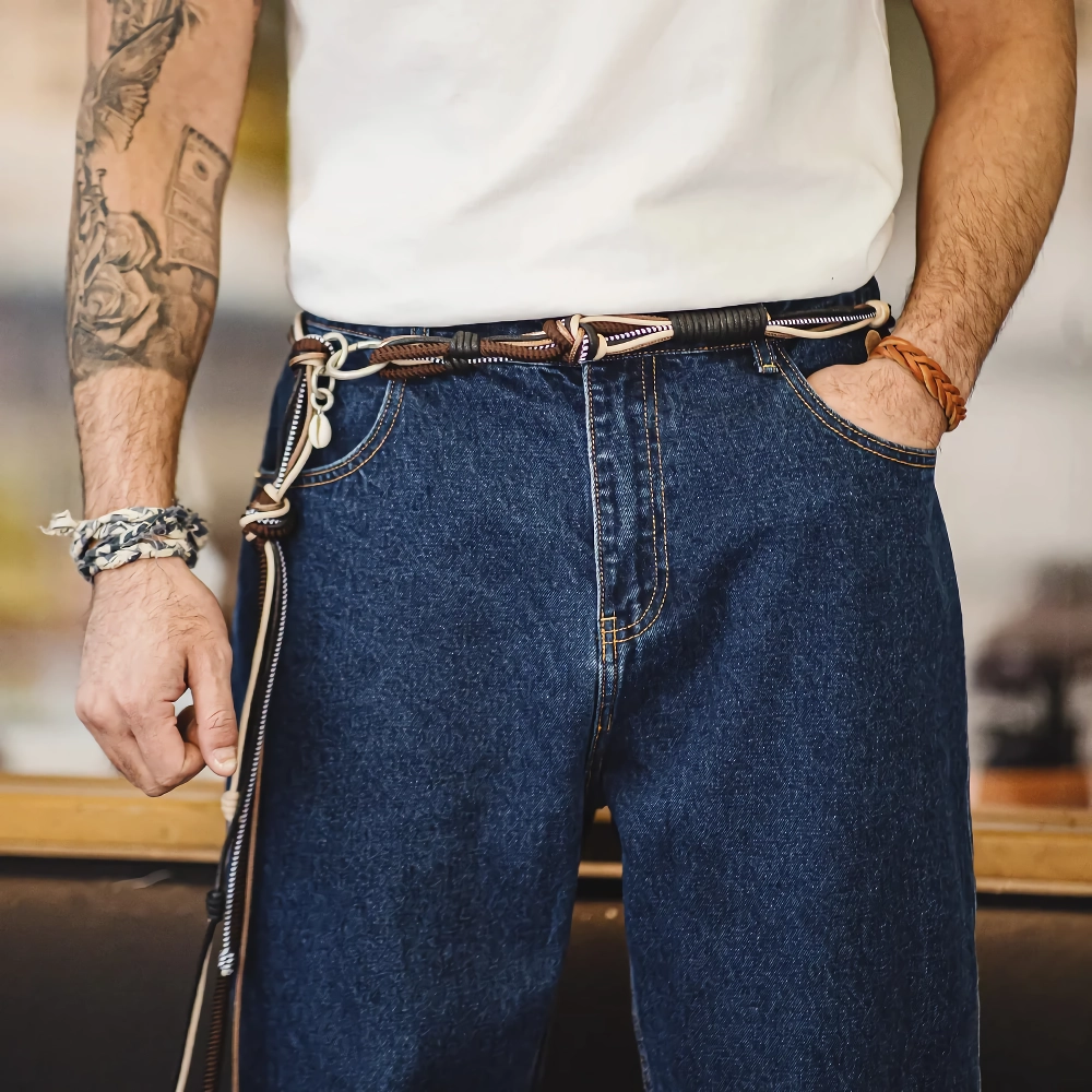 Vintage Woven Multi-Purpose Belt with Chain Strap for Men and Women