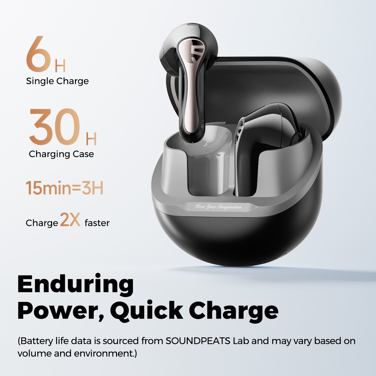 - Extended Battery Life: Get 6 hours of playtime on a single charge and 30 hours with the charging case.