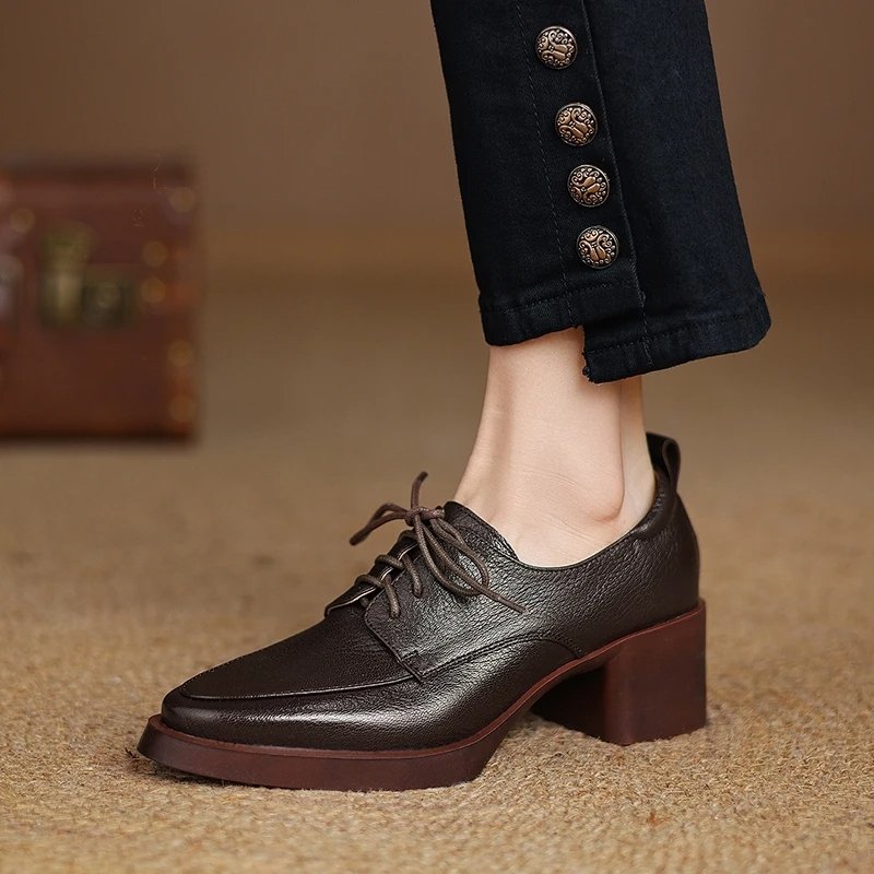 These shoes are designed for the modern woman who values both style and practicality. The sleek lace-up Oxford design is ideal for professional settings, but its timeless appeal also makes it a great choice for casual outings. The 5cm square heel provides the perfect balance of height and comfort, making these shoes ideal for long workdays or evening events. Whether you’re pairing them with trousers, skirts, or dresses, these shoes will quickly become your go-to for both work and play.