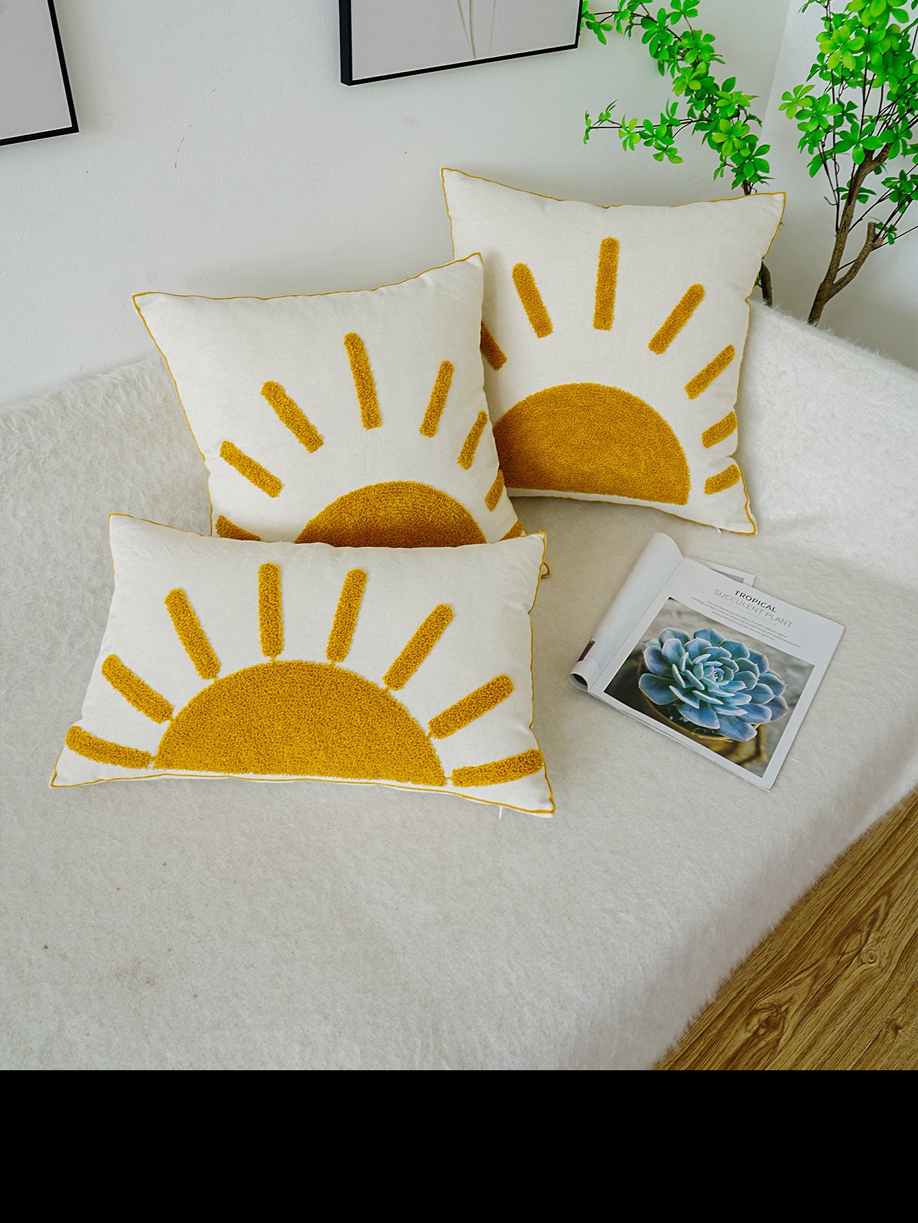 Yellow Sun Tufted Embroidered Decorative Throw Pillowcase